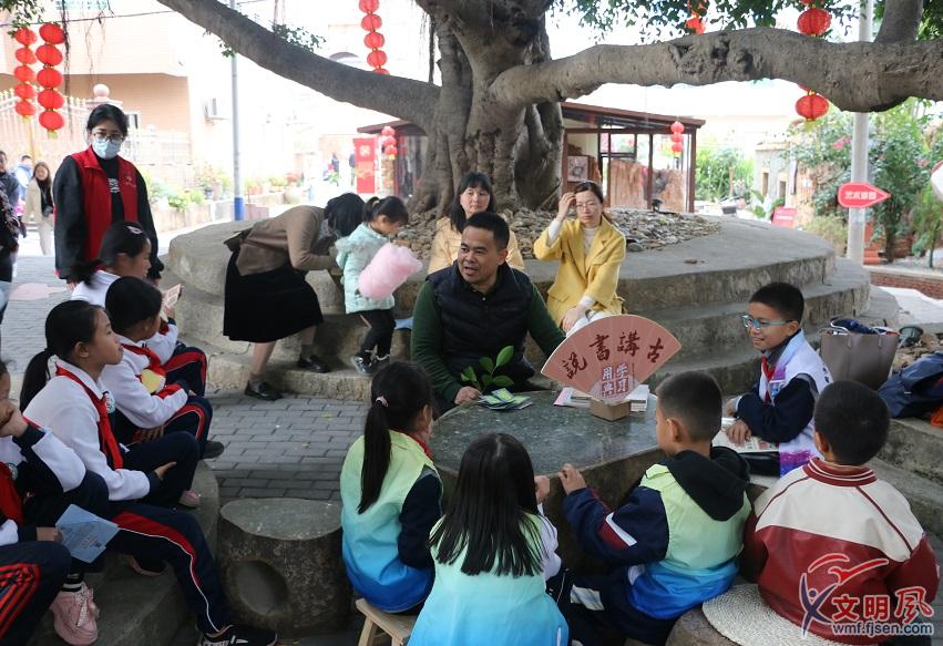 在黃厝村的三生榕樹下,廈門曾子書院老師力禾用通俗易懂的語言,將雷鋒的故事娓娓道來,并結合實際分析“仁義忠信 樂善不倦”典故,弘揚“善文化”。