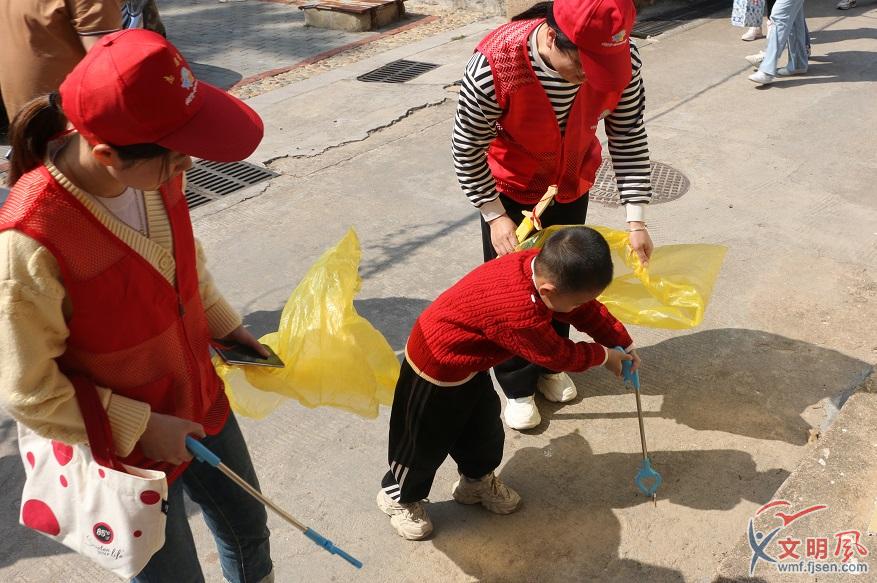 當天下午,來自翔安區各鎮(街)新時代文明實踐所、志愿服務支隊的志愿者們,還沿著藝術打卡路線,走進黃厝村的大街小巷,用夾子、垃圾袋等簡單工具,撿拾路上的煙頭、紙巾等垃圾。不少志愿者帶著孩子一起參與健步行,既增進親子之間的互動,又培養了孩子勤于動手、愛護環境的志愿服務精神。