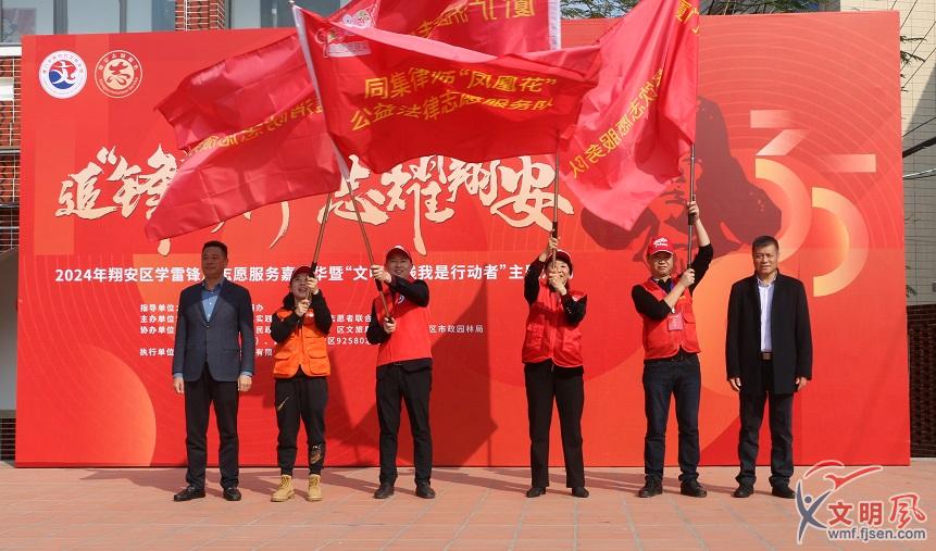 現場還舉行了廈門廚味樂餐飲志愿服務隊、廈門廣濟醫院志愿服務隊、同集律師“鳳凰花”公益法律志愿服務隊、月祥鑫消防志愿服務隊授旗儀式。