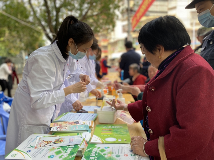 華安縣衛(wèi)健局、中醫(yī)院設(shè)置義診臺,對前來咨詢的對象及患者進(jìn)行測量血壓、血糖等健康檢查。發(fā)放健康宣教資料,普及疾病預(yù)防保健知識、中醫(yī)養(yǎng)生保健等醫(yī)學(xué)知識,引導(dǎo)居民健康膳食、科學(xué)運(yùn)動。