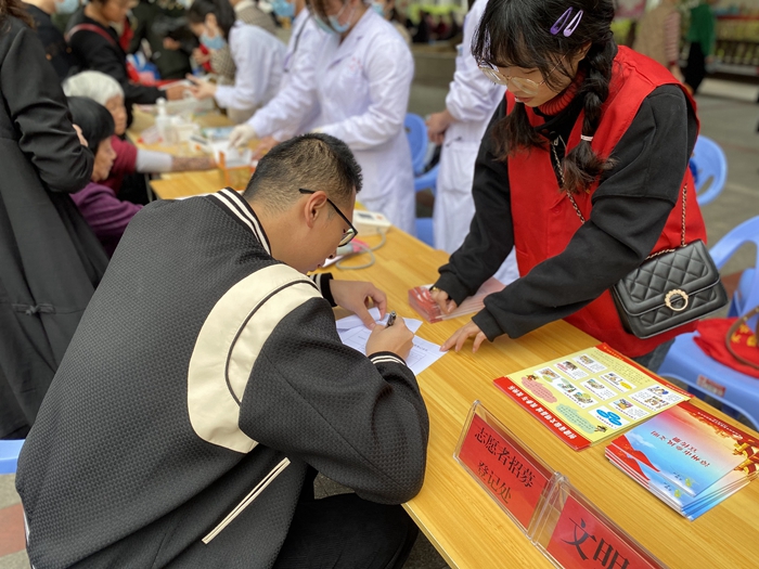華安縣醫(yī)院、中醫(yī)院志愿者為群眾測血糖、量血壓