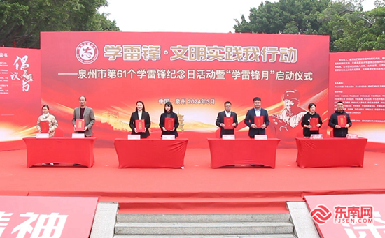啟動儀式上,有關部門領導為2024年度泉州市學雷鋒活動示范點和崗位學雷鋒標兵頒發牌匾和榮譽證書。同時,舉行社會志愿服務團隊與新時代文明實踐中心(所、站)簽約共建儀式,推動更多的社會資源下沉基層一線,推動泉州市文明實踐高質量發展,讓學雷鋒志愿服務在基層生根、開花、結果。