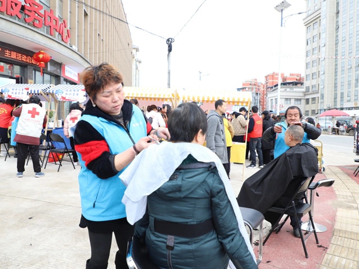 志愿者們為居民們提供義務理發服務。葉曉娟 攝