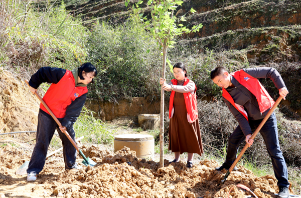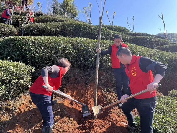 在西坪鎮龍地村瓦格侖附近的山場,西坪鎮聯合縣衛健局、縣文體旅局、縣疾病預防控制中心等 ,開展“守護發源地 植綠核心區”義務植樹活動。現場干部職工們有序地忙活起來,不一會兒,櫻花、紫玉蘭、黃花風鈴木等品種共100多株新植的苗木迎風挺立,為茶園添上一抹新綠。