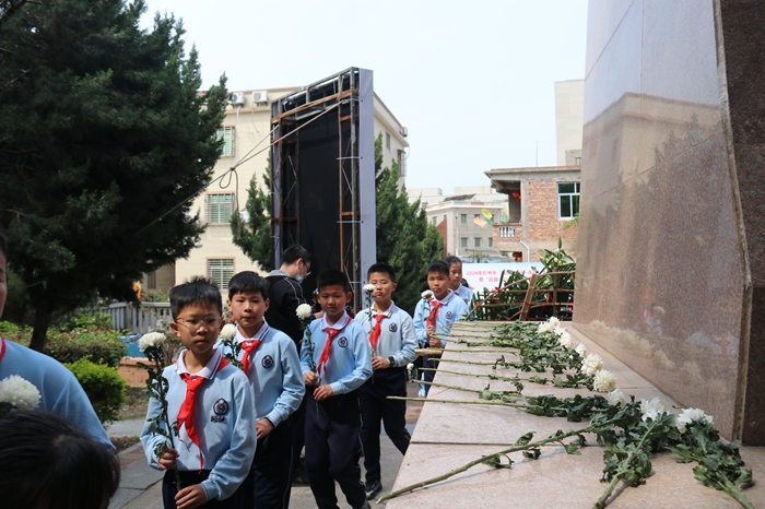 上午10時許,啟動儀式在雄壯的國歌聲中開始,全體人員在紀(jì)念碑前向烈士致哀并三鞠躬。隨后,部隊士兵代表向革命烈士敬獻花圈,少先隊員代表通過誦讀向烈士致敬,最后,全體人員向革命烈士獻花,并繞紀(jì)念碑一周瞻仰。
