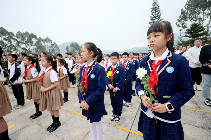 南安市委副書記傅文星、南安市委文明辦主任黃西岳,以及南安市退役軍人事務(wù)局、南安市教育局、南安市城管局、南安市檢察院、柳城街道辦事處、金街社區(qū)部分干部代表、退役軍人、解放軍、泉州師范附屬鵬峰中學(xué)、南安市柳城小學(xué)、南安市第五小學(xué)師生代表等300余人參加活動(dòng)。