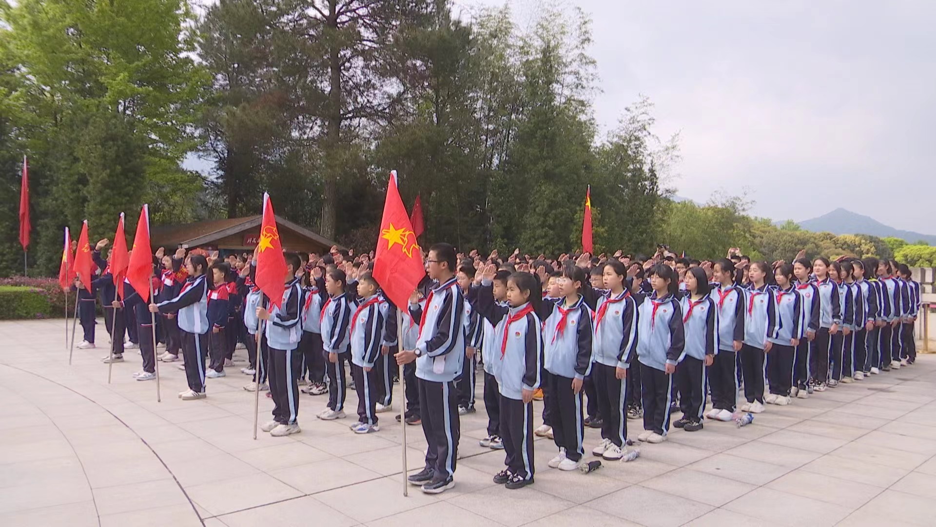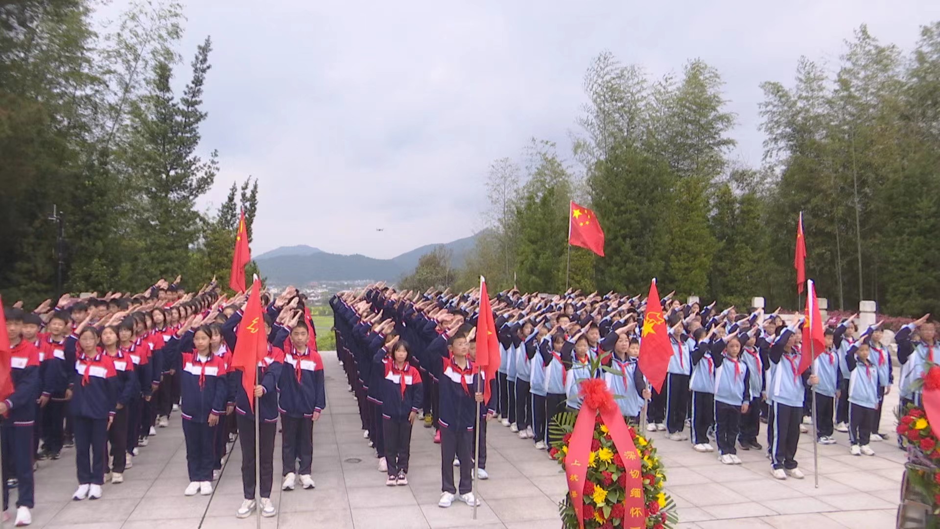 上午9時(shí),在毛主席紀(jì)念園,270多名中小學(xué)生及教師早早來(lái)到紀(jì)念園,懷著無(wú)比崇敬的心情,在毛主席像前唱響中華人民共和國(guó)國(guó)歌和《我們是共產(chǎn)主義接班人》。合唱畢,師生在毛主席像前肅立默哀,少先隊(duì)員獻(xiàn)上花籃寄托哀思,并向毛主席像三鞠躬行禮,深切表達(dá)對(duì)毛主席的追思和懷念。在少先隊(duì)代表的領(lǐng)誓下,少先隊(duì)員重溫入隊(duì)誓詞,誓言鏗鏘,彰顯了少先隊(duì)員繼承和發(fā)揚(yáng)革命傳統(tǒng)的決心。