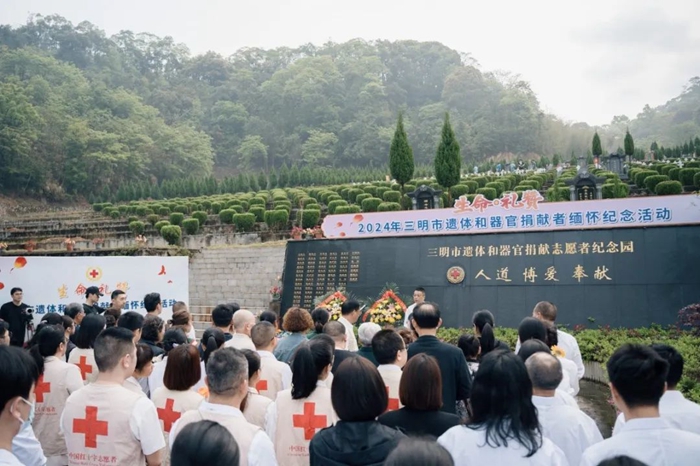 4月2日上午,以“生命·禮贊”為主題的三明市2024年遺體器官捐獻者緬懷活動在三明市遺體和器官捐獻志愿者紀念園舉行。三明市紅十字會、市委文明辦、市衛健委、各縣(市、區)紅十字會等有關單位代表,以及部分捐獻者家屬代表、協調員代表、紅十字志愿者代表、醫學生代表等近兩百人參加活動。