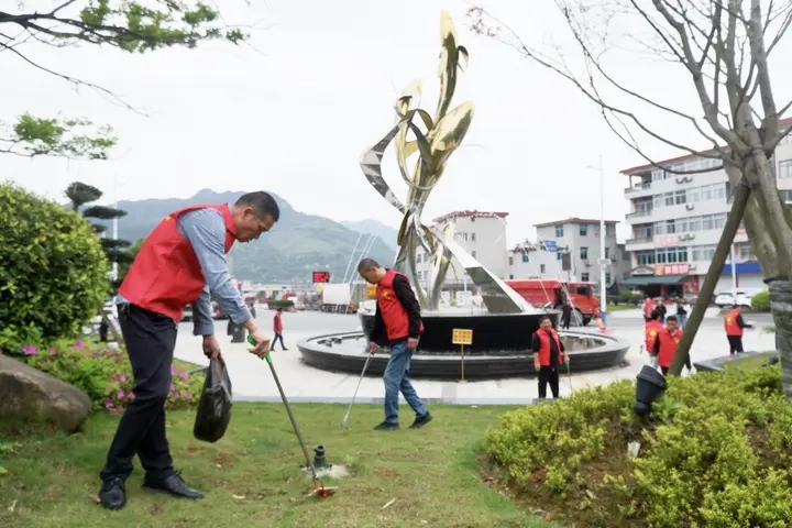 在簡短的動(dòng)員儀式后,以飛鸞鎮(zhèn)機(jī)關(guān)黨支部全體黨員、青年團(tuán)員為主的50余名志愿者,精神飽滿,斗志昂揚(yáng),分成2個(gè)小組分別前往目的地。只見他們身著紅馬甲、手持衛(wèi)生工具,在零碳公園、國魚公園等重點(diǎn)區(qū)域以及鎮(zhèn)區(qū)背街小巷,采取分區(qū)域、全覆蓋的方式,清理衛(wèi)生死角,鏟除小廣告,整治垃圾亂堆亂放,以實(shí)際行動(dòng)提升農(nóng)村人居環(huán)境新“顏值”,繪就和美鄉(xiāng)村新“畫卷”。