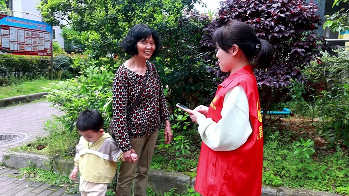 社區網格員正通過手機登錄南平市城市體檢信息采集平臺收集居民關于社區改造后的意見和建議(林伯煙供圖)