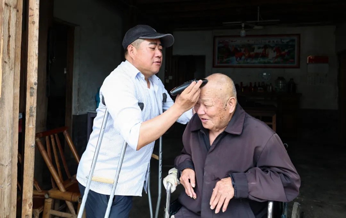 “老父親年紀大了腿腳不便,沒有辦法出門理發,平時都是我用剪刀幫他修剪,也總是剪不平。”溪楓村村民吳曉斌說。王建福在跟吳曉斌聊天時注意到了這一情況,回頭便自費50元買了一個電動理發器,定期上門為老人理發。