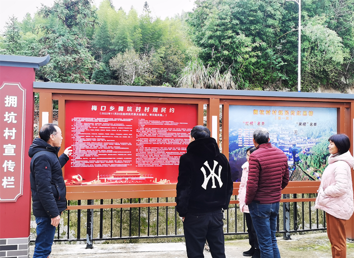 泰寧縣梅口鄉(xiāng)擁坑村村民在宣傳欄查看村規(guī)民約