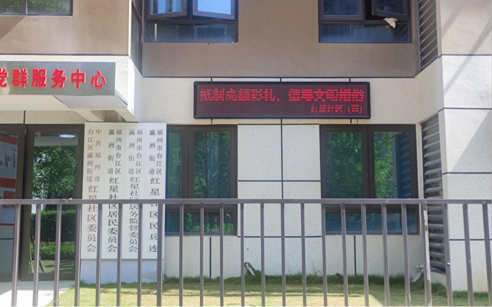 瀛洲街道紅星社區新時代文明實踐站播放宣傳標語(臺江區委文明辦供圖)