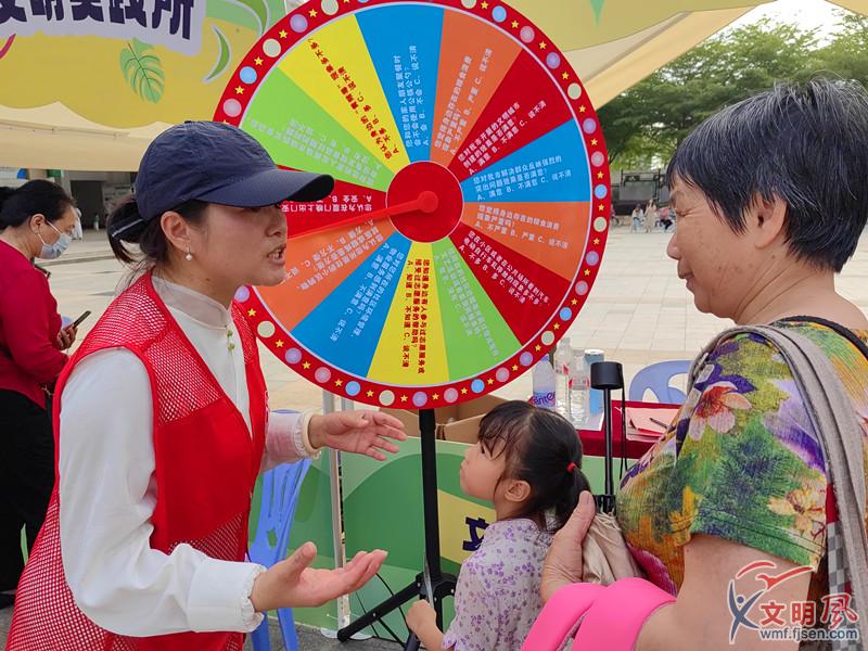 利用大轉(zhuǎn)盤與群眾進(jìn)行互動(dòng)問答(夏菁 攝)