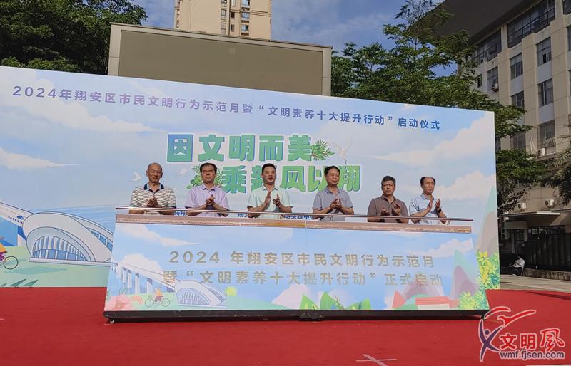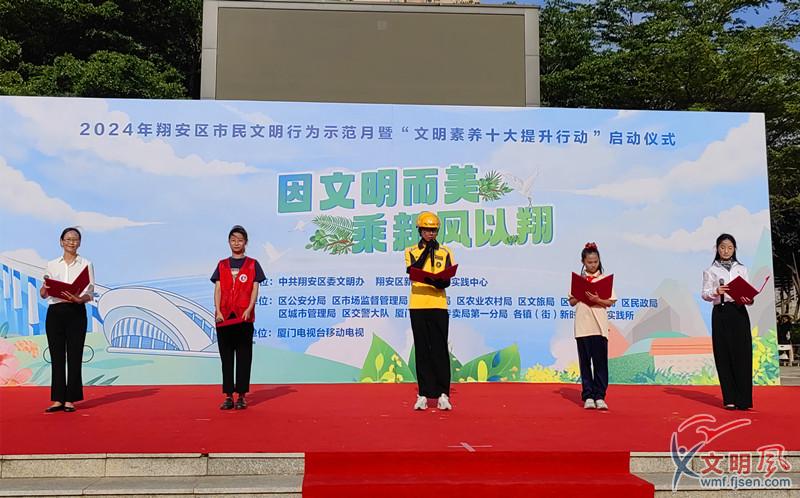 文明風(fēng)5月11日訊 為持續(xù)提升市民文明素養(yǎng),深化文明城市創(chuàng)建,5月11日下午,“因文明而美,乘新風(fēng)以翔”——2024年翔安區(qū)市民文明行為示范月暨“文明素養(yǎng)十大提升行動(dòng)”啟動(dòng)儀式在廈門市翔安區(qū)法治文化廣場(chǎng)舉行。