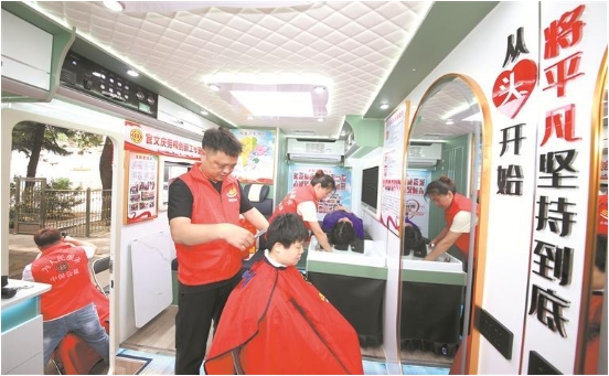 在福利院大門口,中保濟困公益慈善中心義剪服務隊的志愿者們布置好義剪流動服務車,隨即開展義剪服務。一些老人和殘障人士陸續前來,陳阿婆找了個位置坐下,開心地告訴記者:“他們每個月都會定期來幫我們義剪,很熱心?!?/p>