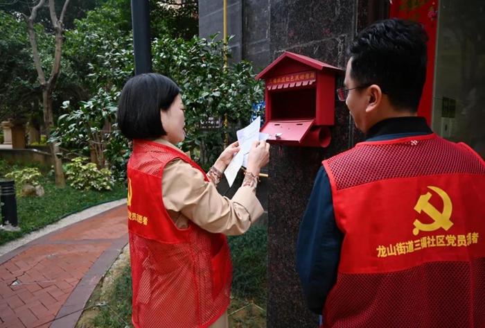 三福社區支部書記現場查看“三福社區紅色流動信箱”來信情況。 來源:福清黨建