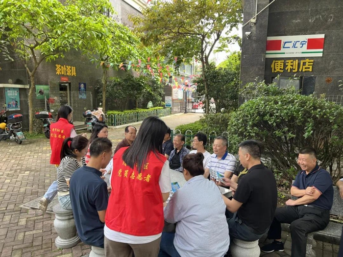 清華社區黨總支書記帶領黨員志愿者開展“黨員進小區”活動。 來源:福清黨建