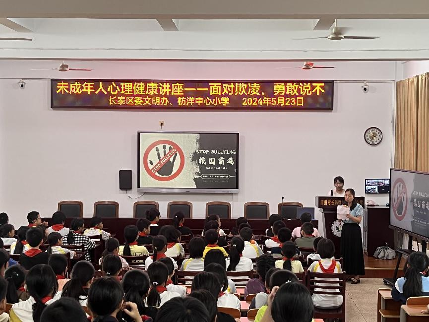 文明風5月28日訊 為進一步加強未成年人心理健康教育工作,引導、培養未成年人形成健康心理及健全人格,促進全區未成年人健康成長,近日,長泰區委文明辦、長泰區校外未成年人心理健康輔導站聯合閩南師范大學教育與心理學院深入枋洋中心小學開展預防校園欺凌專題講座。