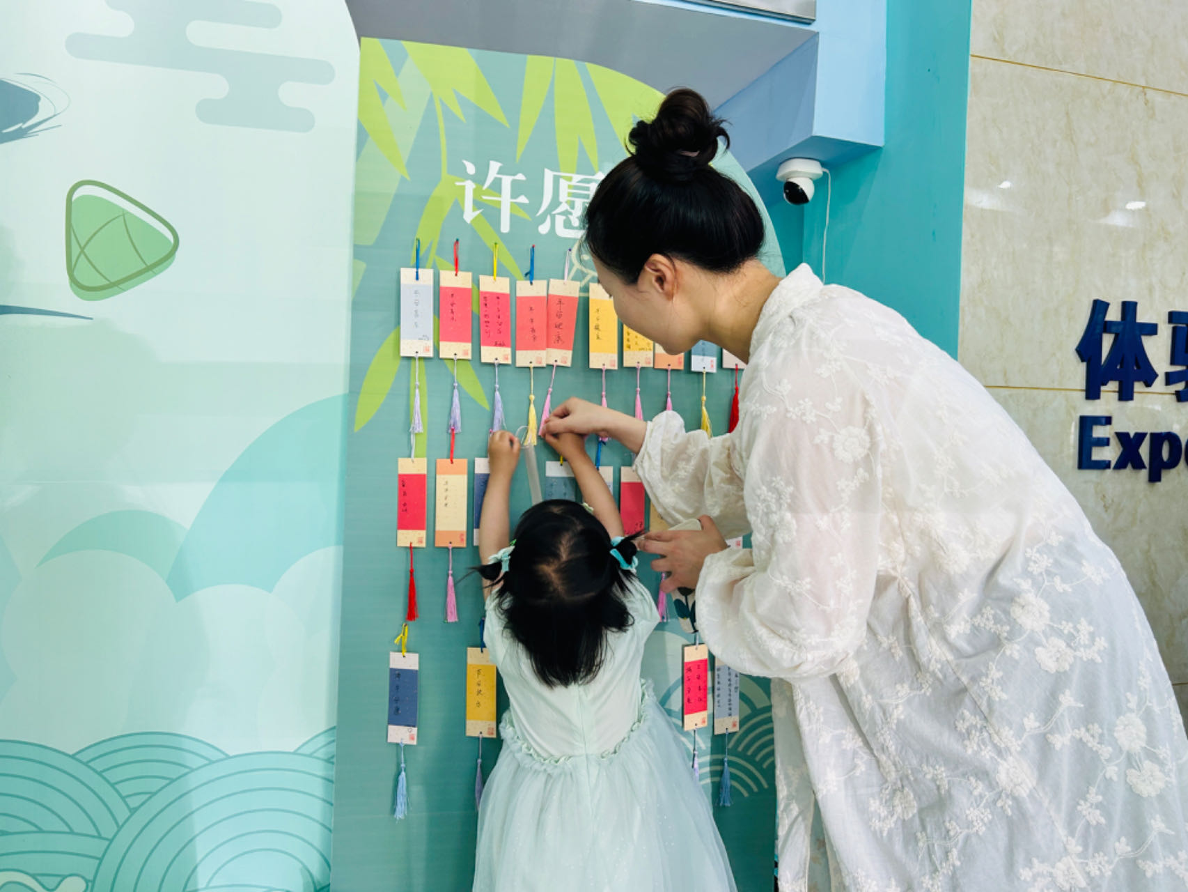 活動開始前,志愿者們為小朋友們額頭點朱砂,這一傳統儀式寓意著驅邪避災,護佑孩子們健康成長。通過這一儀式,孩子們對端午節的獨特習俗有了初步的認識。