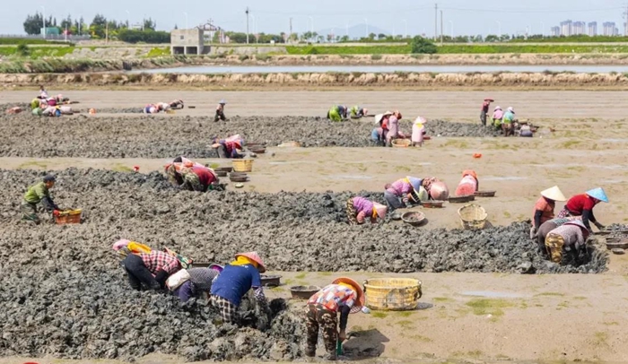 海口鎮斗垣村振先合作社蟶埕豐收場景。 來源:福清市融媒體中心