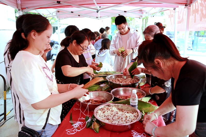 富林社區志愿者組織居民包粽子,增進鄰里感情。南平市委文明辦供圖