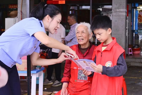 活動現場,城廂鎮派出所通過發放反詐宣傳單,講解反詐知識,提高居民反詐意識。城廂鎮供圖