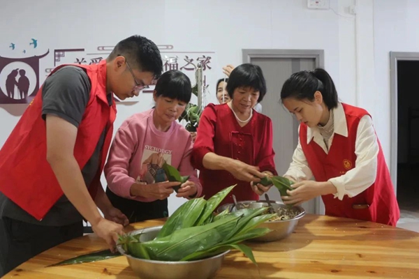捋粽葉、填糯米、加餡料、卷粽葉、纏粽繩……居民群眾歡聚一堂,齊動手、共參與,這是最近常常出現在各個鄉鎮的熱鬧場景。高考前夕,在龍門鎮,志愿者走進龍門中學,和高二的學生們一起包粽子,為高考生提振士氣,預祝“高粽”。在金谷鎮,一場包粽子大賽熱烈又溫馨,評選出了最佳口味獎、最佳外觀獎、最佳創意獎和參與獎。在魁斗鎮,志愿者將包好的新鮮粽子送給困難群眾,送上節日祝福。在城廂鎮,志愿者通過分發宣傳單,向群眾講解反詐騙、移風易俗等知識,進一步提高轄區群眾安全意識。