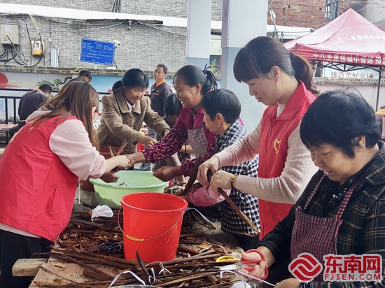 賴阿婆(左二)與大家一起包粽子。德化縣委宣傳部 供圖
