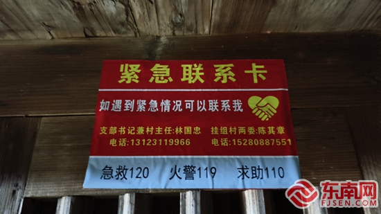 “我們有問題就打上面的電話,不論事情大小,村里都會第一時間幫我們解決。大到求醫送藥,小到物品寄送、售賣農產品等等,一個電話就解決了。”彭坑村連老伯指著墻上的“緊急聯系卡”說道。彭坑村黨支部村書記林國忠介紹,緊急聯系卡上面有村書記、掛組村兩委、急救電話等,村民有突發情況或者有問題需要村里協調可以直接打上面聯系電話。