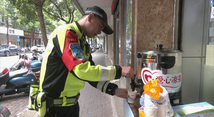 愛心茶攤為路面工作執勤人員提供了貼心服務(福州文明網供圖)