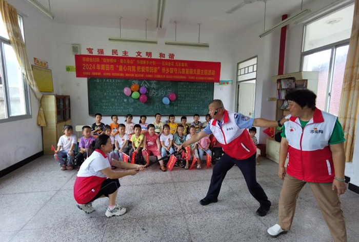 當天,涵江區金盾紅十字志愿服務隊為留守兒童開展暑期防溺水安全課堂、禁毒宣傳教育活動。“不私自下水游泳館;不擅自與他人結伴游泳或戲水……”涵江區金盾紅十字志愿服務隊隊長、“中國好人”李海東針對僑鄉留守兒童的情況,結合警務工作中接觸過的真實案件,為同學們上了一堂生動的防溺水安全課。