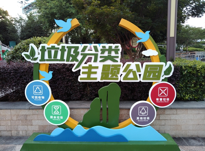 公園內(nèi)設(shè)休閑游樂區(qū)、人物打卡區(qū)、知識(shí)科普區(qū)等多個(gè)板塊,集垃圾分類科普知識(shí)、休閑娛樂于一體,將垃圾分類知識(shí)以寓教于樂、寄學(xué)于景的方式進(jìn)行呈現(xiàn)。園內(nèi)精心布置了別具一格的垃圾分類標(biāo)語(yǔ)小品、花草牌、動(dòng)漫卡通形象和四色環(huán)線知識(shí)綠道等,休閑游樂區(qū)設(shè)置了“翻翻樂”“跳房子”“籃球場(chǎng)”等極具趣味感的游樂設(shè)施,讓廣大市民群眾在休閑娛樂、享受文化景觀的同時(shí),加強(qiáng)垃圾分類宣傳引導(dǎo),提升全民環(huán)保意識(shí),營(yíng)造全民參與垃圾分類、倡導(dǎo)綠色生活的濃厚氛圍。