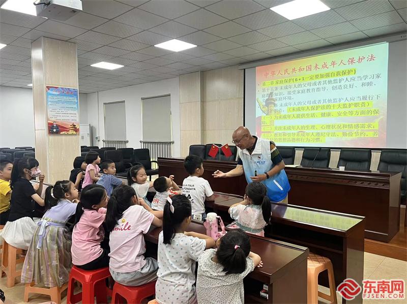 前場社區(qū)新時代文明實踐站邀請集美區(qū)關工委講師團成員喻海洪為轄區(qū)小朋友開展未成年人保護法科普系列講座(前場社區(qū)新時代文明實踐站供圖)