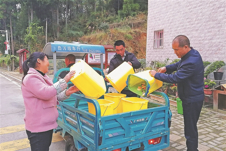 泗橋鄉(xiāng)坂坑村志愿者回收濕垃圾 鄭文敏 攝