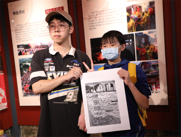 “兩馬”青少年體驗版畫拓印,制作羅星塔版畫作品。福州文明網(wǎng)供圖