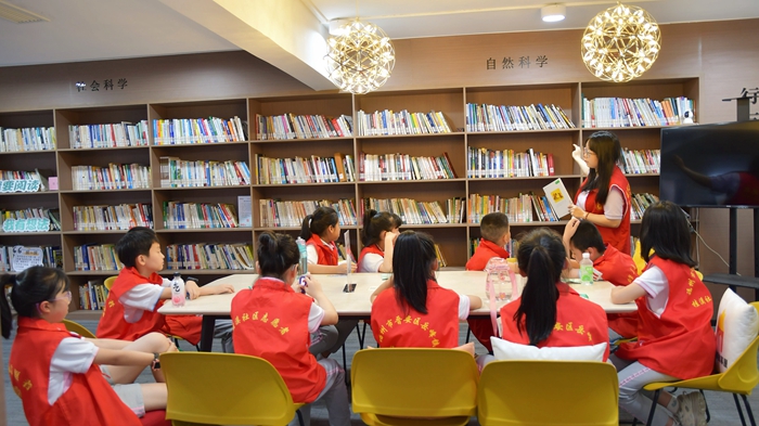 來自福州市少年兒童圖書館的志愿者講授圖書分類知識。福州文明網(wǎng)供圖