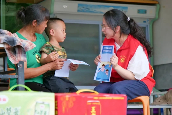 入戶(hù)開(kāi)展防溺水宣傳。吳朝燁 攝
