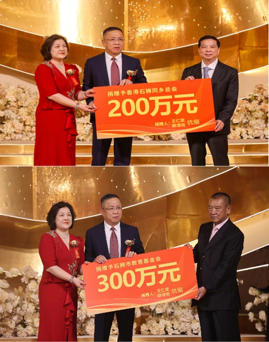 2024年3月8日晚,省政協委員、香港石獅同鄉總會候任會長、靈秀鎮教育基金會會長王仁獎、郭完伉儷在愛子新婚典禮上,向石獅市教育基金會慷慨捐贈300萬元、向香港石獅同鄉總會捐贈200萬元。這一情系家鄉教育公益事業的善舉備受各界點贊,在石獅傳為一時佳話。