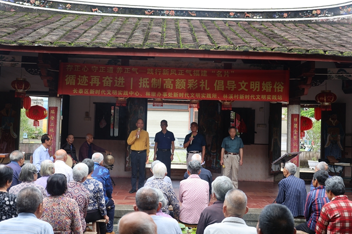 林溪村7080老漢宣講隊開展“抵制高額彩禮 倡導文明婚俗”閩南四句主題宣講。供圖:長泰區林溪村