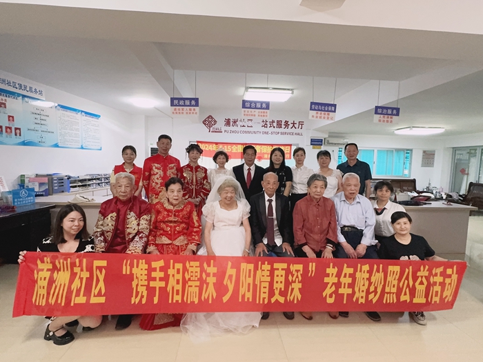 浦洲社區(qū)“攜手相濡沫 夕陽情更深”老年婚紗照公益活動(新橋街道 供圖)