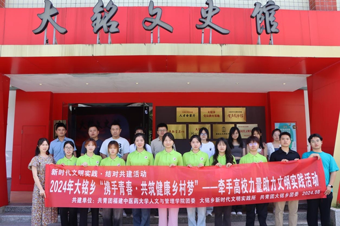 文明風8月2日訊 8月1日,福建中醫藥大學人文與管理學院團委10余名師生走進大銘鄉,與德化縣大銘鄉新時代文明實踐所、共青團大銘鄉團委結對共建開展“攜手青春·共筑健康鄉村夢”主題活動,牽手高校力量助力文明實踐,推動優質資源下沉新時代文明實踐所。