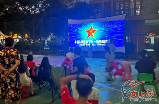為豐富轄區群眾的文化生活,厚植愛國情懷,金山街道各個社區還開展了“愛黨擁軍”露天觀影活動。影片中的愛國主義情懷和英勇事跡,深深感染了在場的每一位居民。