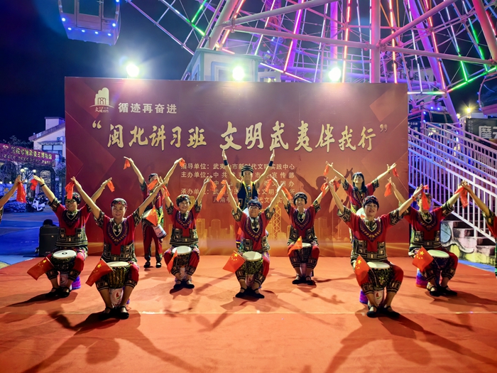 活動中,夷緣舞蹈隊、武夷鄉韻手鼓隊用動感的鼓聲打響美好生活,用歡快的舞步點贊時代發展,讓主旋律更加響亮,正能量更加強勁。活動現場圍繞文明行為、環保意識和學習黨的二十屆三中全會精神等為主題設置多次答題環節,答對題目的觀眾獲得精美禮品一份。