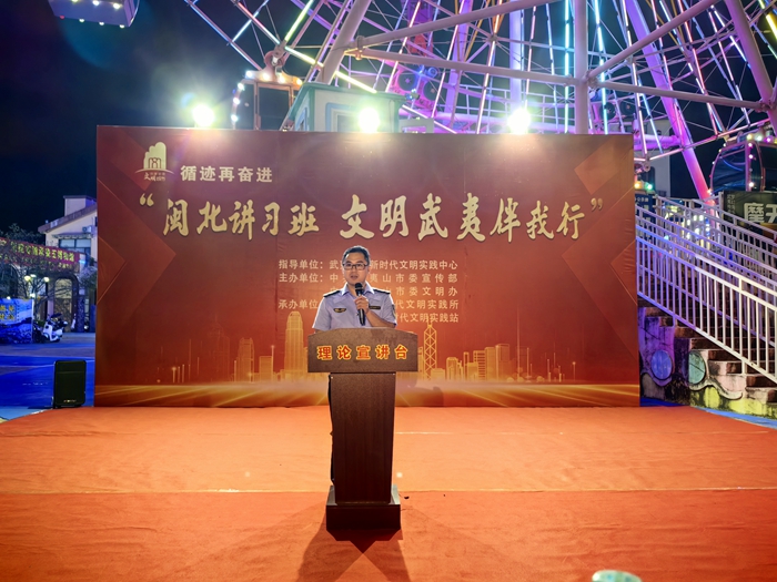 文明風8月10日訊 為深入學習黨的二十屆三中全會精神,以更強舉措推動精神文明建設取得新成效。8月6日,武夷山市武夷街道新時代文明實踐所、八角亭社區新時代文明實踐站在海洋公園廣場隆重舉辦“閩北講習班·文明武夷伴我行”活動。