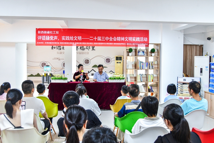鼓西街道新時(shí)代文明實(shí)踐所舉辦“評(píng)話揚(yáng)黨聲實(shí)踐繪文明”文明實(shí)踐活動(dòng),邀請(qǐng)福榕評(píng)話藝術(shù)中心的老師們用獨(dú)具特色的福州評(píng)話講述黨的二十屆三中全會(huì)報(bào)告內(nèi)容,以接地氣的生動(dòng)語(yǔ)言講述了城市發(fā)展、民生幸福等內(nèi)容,為居民群眾帶來(lái)一場(chǎng)別出心裁的宣講活動(dòng)。