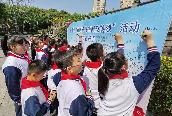 積極推進“百園千校清明祭英烈”活動,遴選101所學校、9個烈士紀念園,按照就近組織的原則,根據共建合作協議,開展祭掃活動。舉行莆田市“百園千校清明祭英烈”活動啟動儀式,儀式上通過學生代表宣讀倡議書、重溫入隊誓詞、演唱《我們是共產主義接班人》、敬獻鮮花、“五個一”活動,引導未成年人銘記革命歷史,追尋紅色記憶,傳承紅色基因,弘揚英烈精神,賡續紅色血脈。在文明莆田、莆田新聞等微信公眾號開設“網上祭英烈”活動專欄,發動中小學校組織師生參與網上獻花、簽名寄語等紀念活動,線上參與人數15萬多人次。