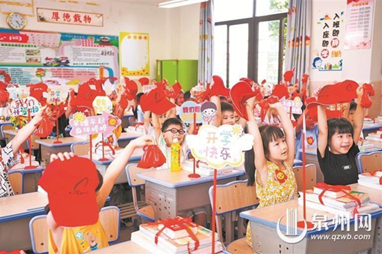 9月2日,泉州市各小學(xué)幼兒園迎來開學(xué)的第一天。各學(xué)校通過豐富多彩的迎新儀式、開學(xué)典禮、開學(xué)第一課等活動,以滿滿的儀式感按下“開學(xué)鍵”,歡迎學(xué)子們回歸書聲瑯瑯的校園。