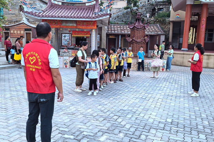 志愿者組織學生排隊叮囑乘船注意事項。泉港區南埔鎮供圖