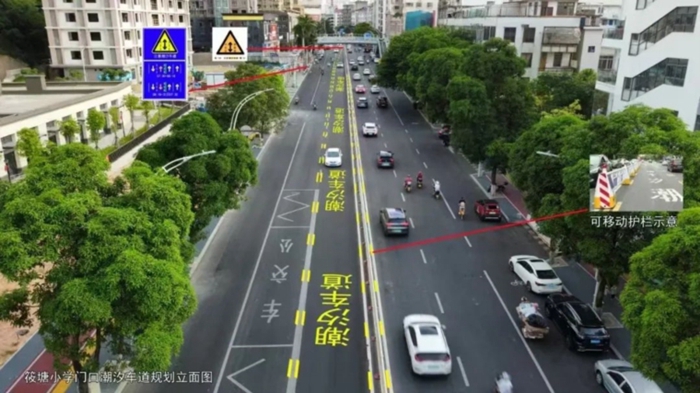 據(jù)介紹,“潮汐車道”屬可變車道一種,是指根據(jù)早晚交通流量的不同情況,對有條件的道路設置一條或多條車輛行駛方向隨不同時段而變化的車道。車道的行駛方向和功能不再固定、單一,而是可以根據(jù)交通流量進行優(yōu)化調(diào)整。